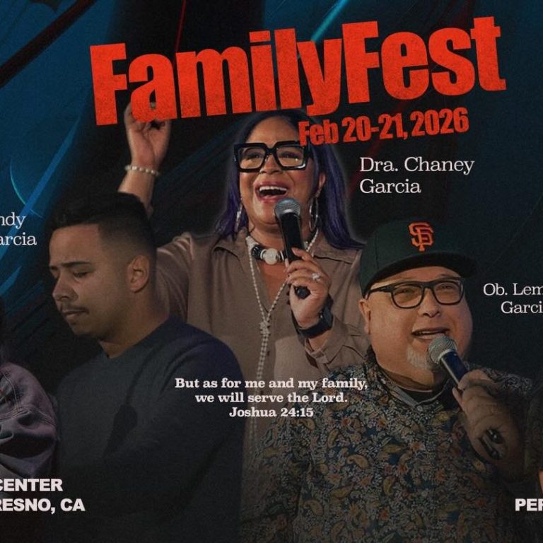 FamilyFest 2026 está programado para el 20 y 21 de febrero de 2026, ofreciendo dos noches de adoración y actividades familiares. El evento se llevará a cabo en el Bethel Christian Center, ubicado en 4665 N First St, Fresno, CA 93726, USA. El 20 de febrero comienza a las 7:30 PM y el 21 de febrero a las 8:00 PM. El precio del boleto es de $65por persona para mayores de 12 años. Los invitados incluyen a la Dra. Chaney Garcia, Andy Garcia, Rev. Edward Garcia, Greta Armenta y Ob. Lemuel Garcia.